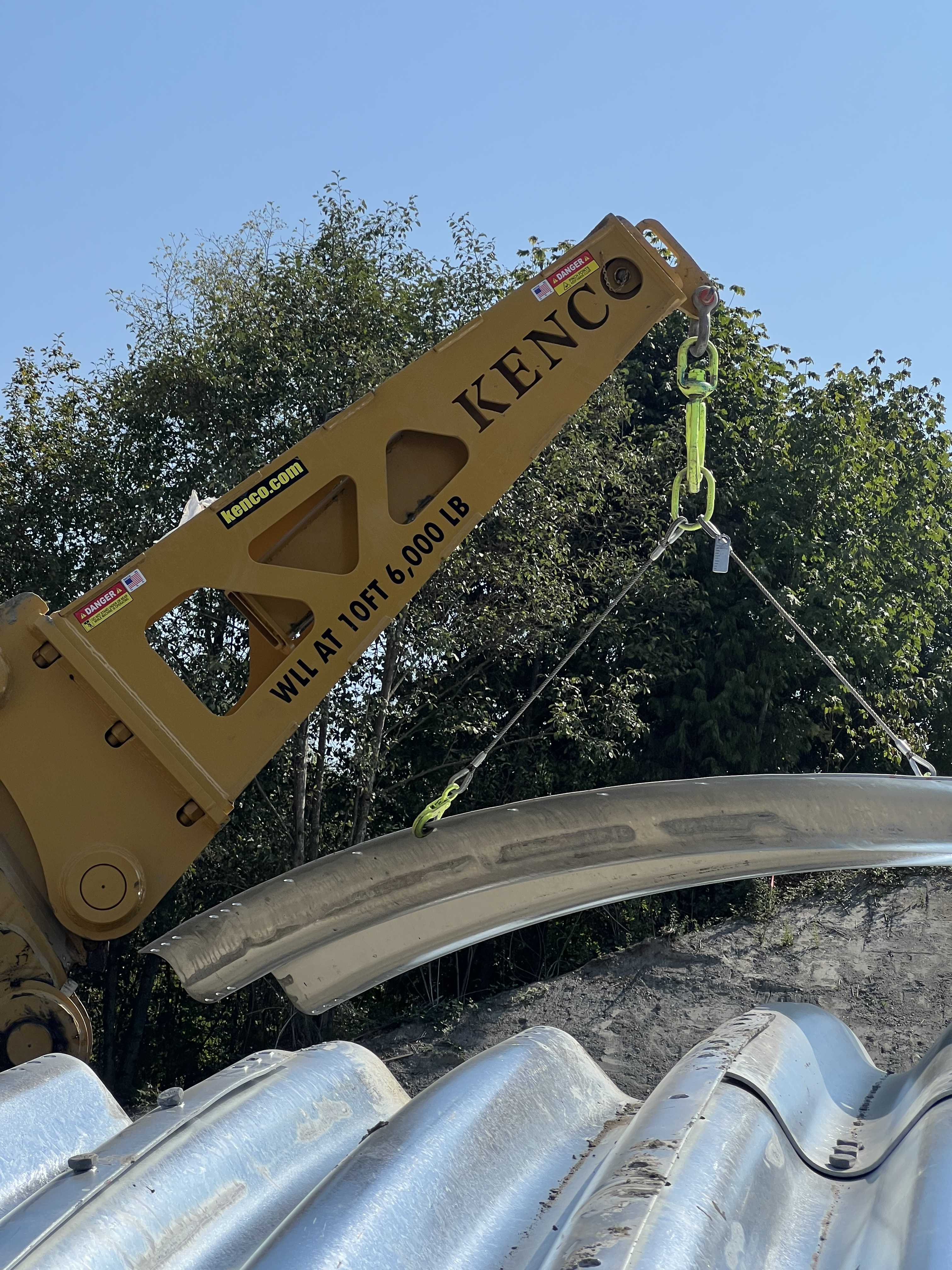 “We used your excavator Jig at Granite constructions project. Secret Creek fish passage on I5 in Arlington Wa. We used it to set an arch culvert and it worked exactly as we planned and saved us from having to use a crane. Saving us time and money. It is a well designed and convenient attachment. Thank you!”